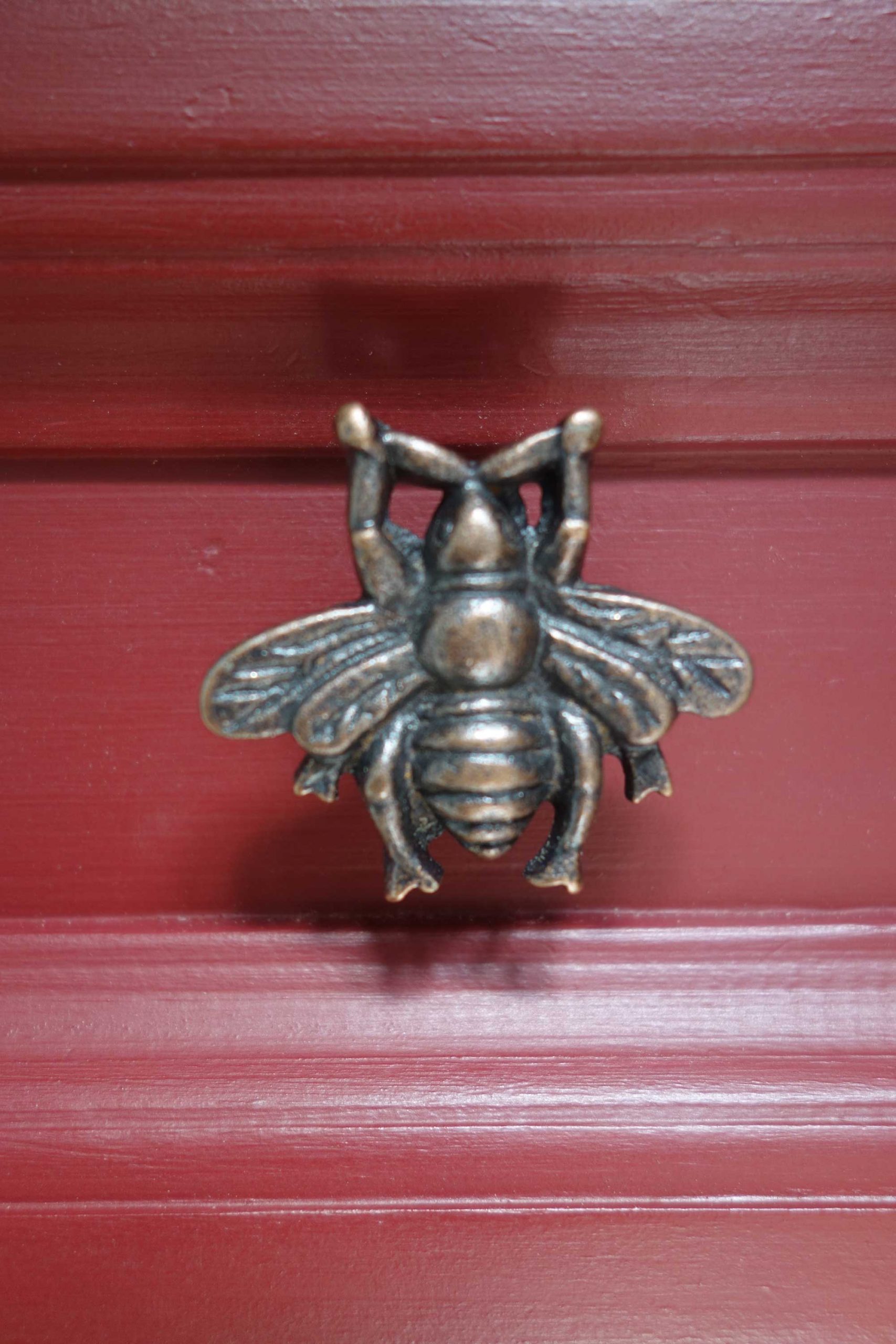Brass finished bee handles have been added, which perfectly complement the cranberry colour, making this an ideal piece of furniture for a nature lover or keen gardener.