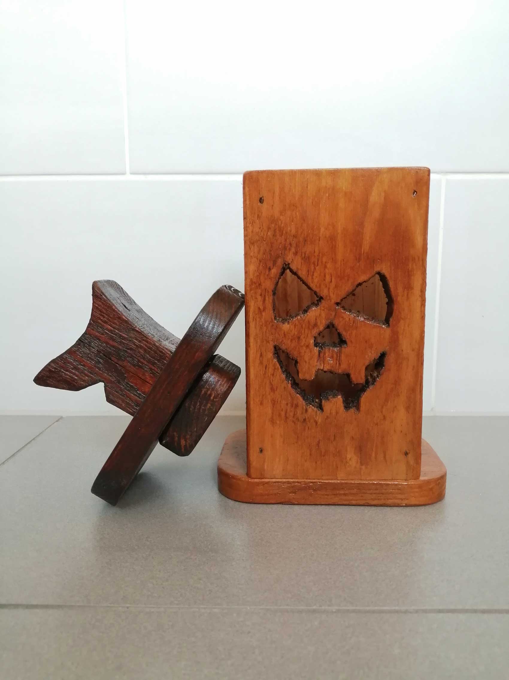 After applying some exterior stain, the Halloween Jack O’Lantern was complete. I think it’s spook-tacular. Sorry.
