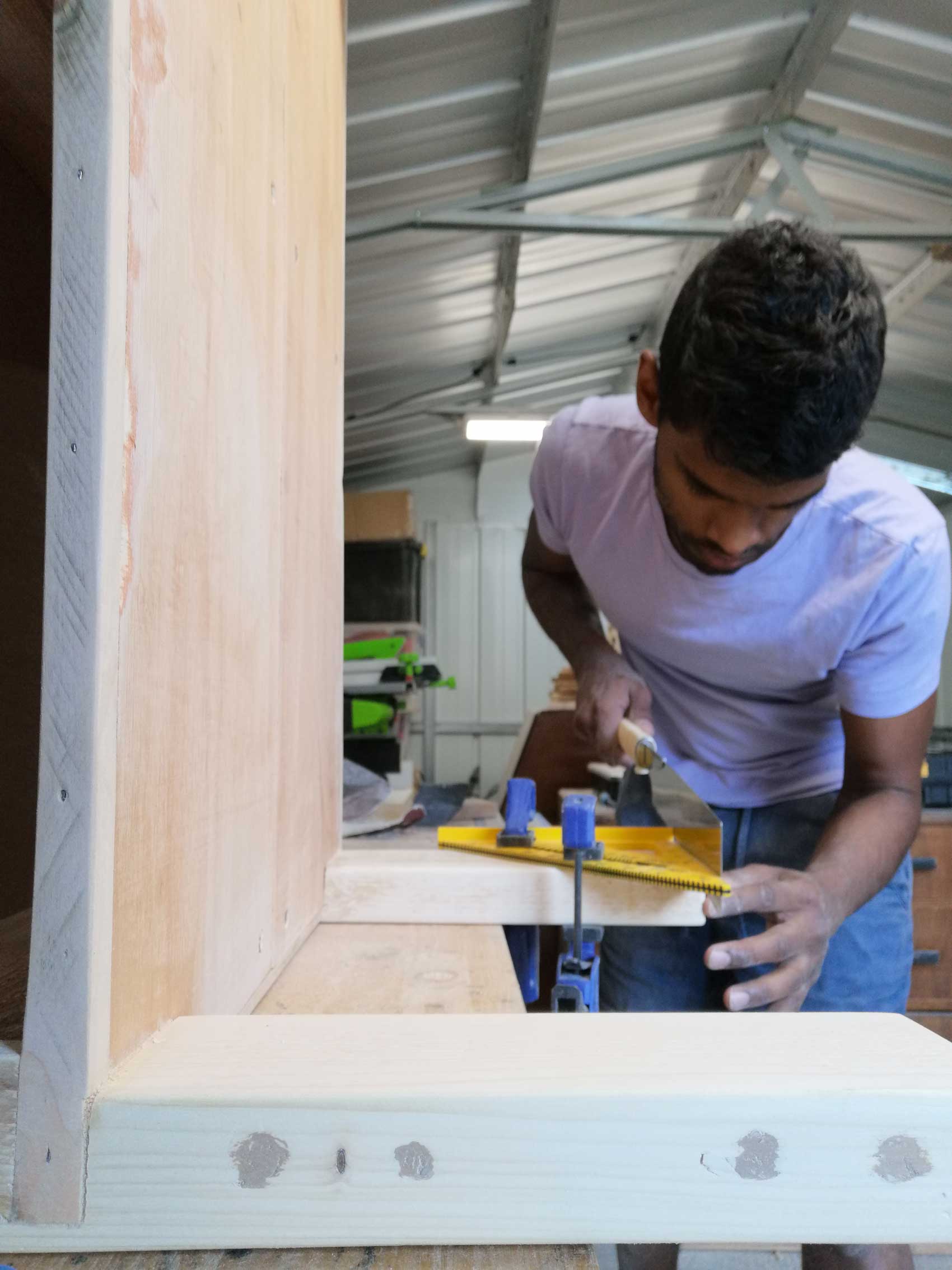 At this point I imagined the table almost like a piece of clay which I needed to mould into shape. I wanted to remove any protruding edges and ensure everything was smooth, straight and square. This required a lot of sanding and filing.