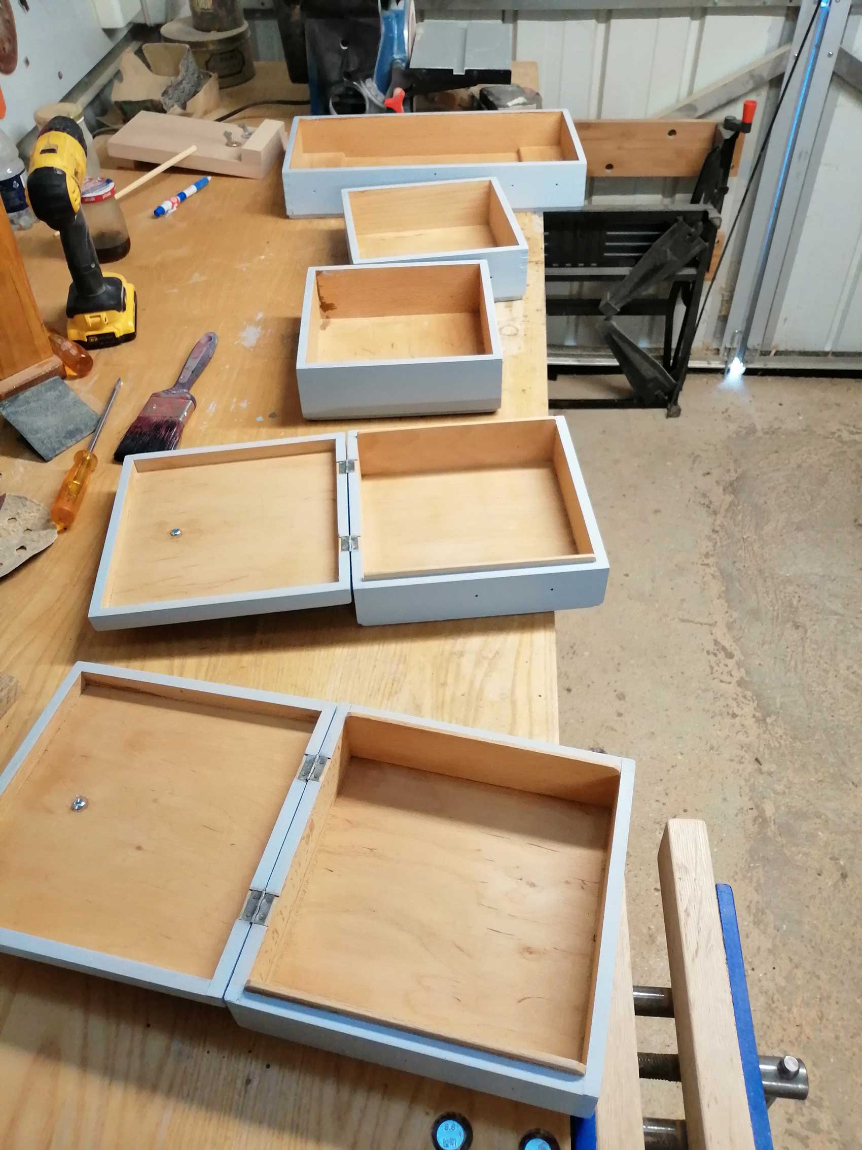This bit was trickier than I expected. I had taken lots of photos at the start, and labelled some of the pieces, but when it came to putting everything back together I was struggling. There were a number of issues, for example the arms didn’t all have holes in the same places so each one had to go back to its original position. And the boxes weren’t perfectly square. I never even considered that could happen, but I’ll be prepared next time! However after some perseverance and some caffeine I figured it out.