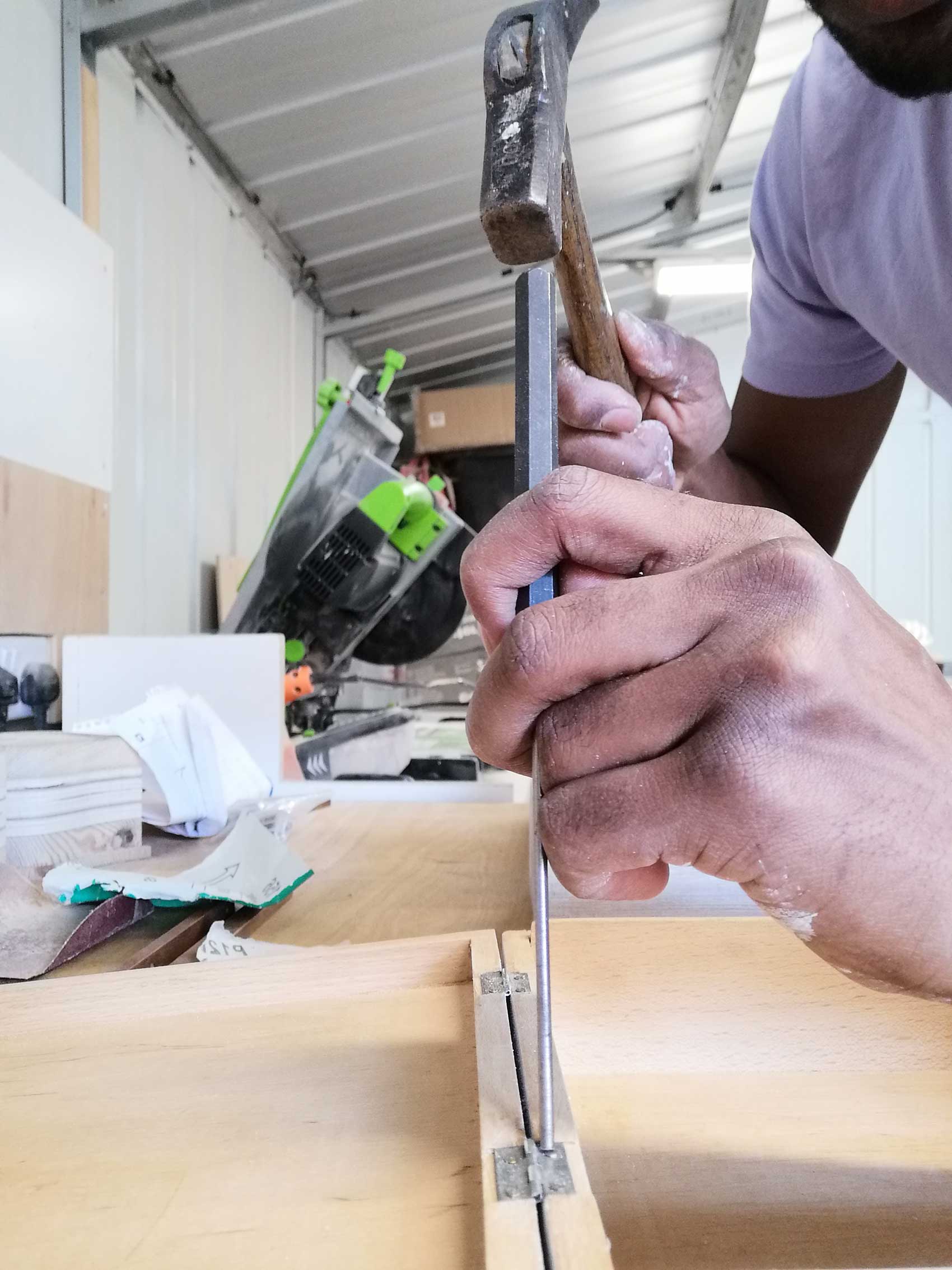 As I was raiding a skip for off-cuts, I spotted this sad looking sewing box looking up at me. I’d never worked on one before, and structurally it was in surprisingly good shape so I grabbed it and took it home.